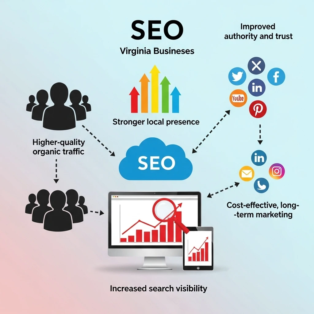 Search visibility is no longer optional, it is the foundation of modern business growth. As a performance-focused Virginia SEO Company, we help brands across the people of Virginia increase organic traffic, improve Google rankings, and convert search visibility into measurable revenue.